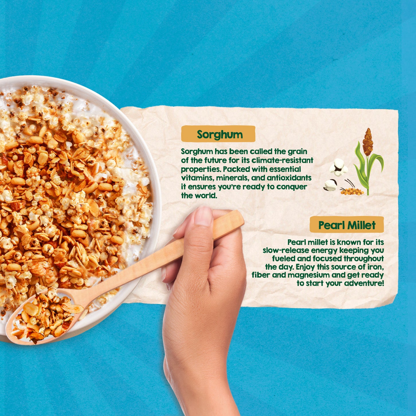 A deliciously crunchy blend of real peanut butter, ancient grains, and nuts, this granola delivers 22% plant-based protein to power your day. Satisfying, wholesome, and perfect for active living.